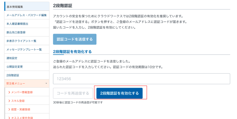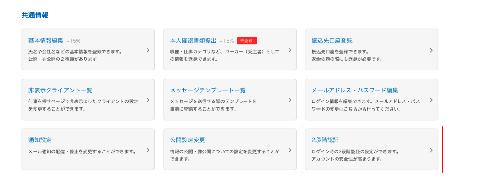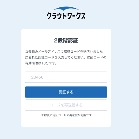 • 2段階認証はクラウドワークスWebサイトでの提供になります。